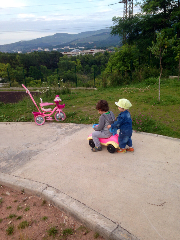 А еще во дворе сразу вспомнил всех своих друзей и свою любовь Алену!) он так вырос по сравнению с ней, папа ее говорит, как будто на 5 лет ее старше, а разница у них всего 2 месяца))))
