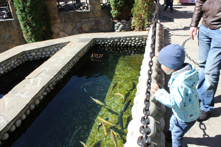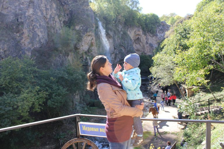 Изначально планировали спокойно провести выходные дома, погулять с Темкой в парке, вечером сходить куда-нить вдвоем с мужем.. Потому что родить за пару дней до открытия нашего РД было бы очень обидно! Но в субботу такая прекрасная погода была, что я приехала из ЖК, собрала всех и мы быстро поехали в одно из моих любимых мест в окрестностях Кисловодска - Медовые водопады! К тому же моя мама там еще не была, а муж любит это место за самый вкусный шашлык из барашки)) Темке больше всего понравилось бросать камушки в речку и кормить животных в мини-зоопарке) теперь воспроизводит, как кричали осел и индюк) они были самые голодные, как только увидели ковшик с едой у нас в руках, повысовывались из клеток и начали громко орать)) а нам с мамой в удовольствие было просто прогуляться! Зато мы так нагулялись и надышались, что на дневной сон свалились все)))