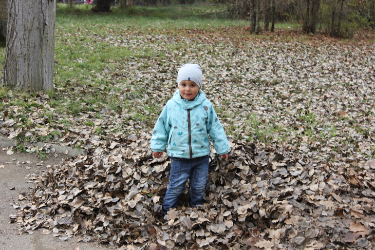 Золотую осень мы пропустили, ну хоть в такой листве поигрался ребенок)))