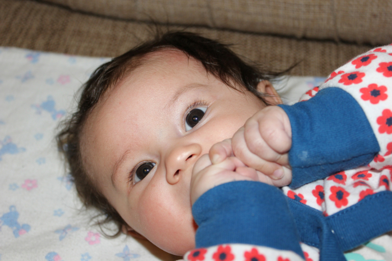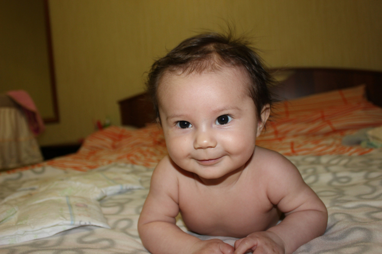 Ну что я еще могу о ней сказать, очень шустрая девочка растет. Она даже кушает быстро) дольше 7-10 минут у груди не проводит, а чаще 5 мин пососет и достаточно. Одну лежать уже не оставляю, активно переворачивается, правда только через один бок. На след.неделе по плану прием у невролога, наверно, назначит массаж. Я итак молодец, что еще не вызвала невролога домой (а порывалась) и дотерпела до планового приема.
