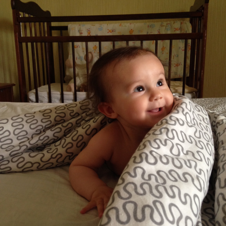 - с Темой не разлей вода) Ксюша просыпается, он первый к ней бежит, если завалилась на бок, может посадить. Уже научился это делать аккуратно, я разрешаю)