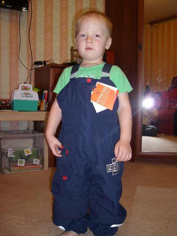 Нелли, спаисбо за полукомбинезон. Сын ростом 95см., полукомбез размер 100. Сидит с запасиком. Уже успели немного поносить в сад, когда были морозы. Самый большой плюс для меня, что грязь очень легко оттирается влажной тряпкой, даже лучше чем с реймы)