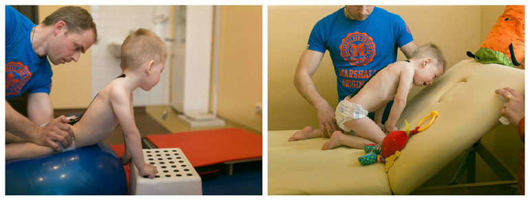 С помощью виброплатформы, войта-терапии, упражнений на фитболе Гоша учил новые движения, укреплял мышечный корсет и разрабатывал равновесие. К сожалению, освоение движений дается Гоше с большим трудом, и здесь главный враг - сильный гипотонус, мышцы вялые и работать абсолютно не хотят. Поэтому усилий, времени и терпения требуется очень много.
