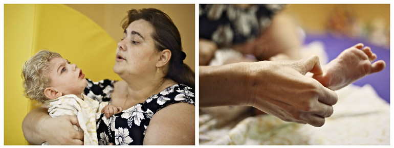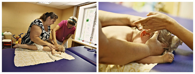То, как Дима четко выполнял в руках реабилитолога различные позы и как умело его руки и ноги слушались, отметили все. Конечно, не обошлось без слез, но Дима молодец, настоящий маленький мужчина. Реабилитолог много времени на занятии уделила обучению мамы приемам войта-терапии, выучили несколько поз и укладок. Теперь мама каждый день, по три раза занимается с Димой дома, чтобы довести рефлексы до полного автоматизма и на их основе Дима уже смог овладеть навыками ползания, сидения. Верим, так и будет.