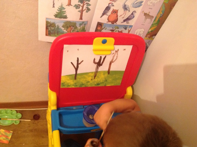 10. И наш пейзаж - кисточкой рисовали ствол по образцу и "штамповали" листву