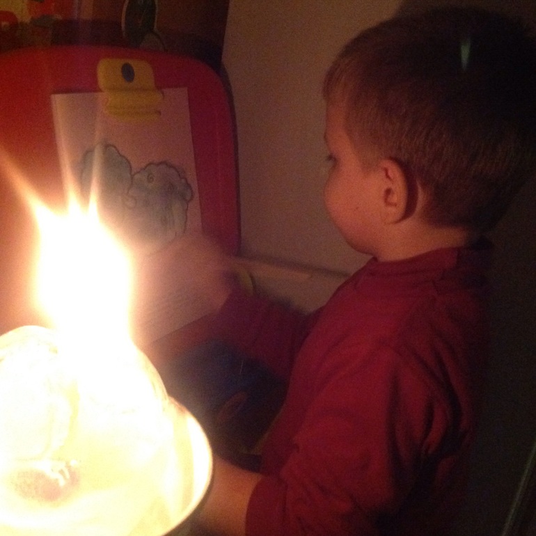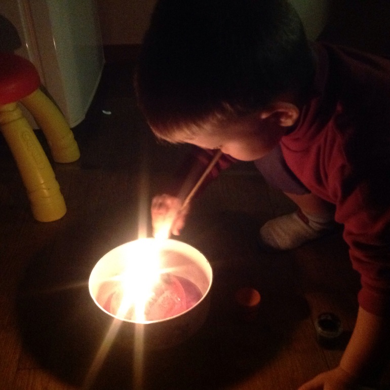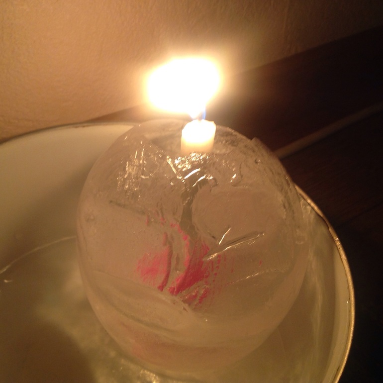3. Делали ледяной подсвечник. Даже рисовали при свече. И разукрашивали лед