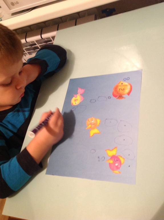 Рисуем рыбкам заданное число пузырьков. Это отвлекала, пока ужин готовила)))
