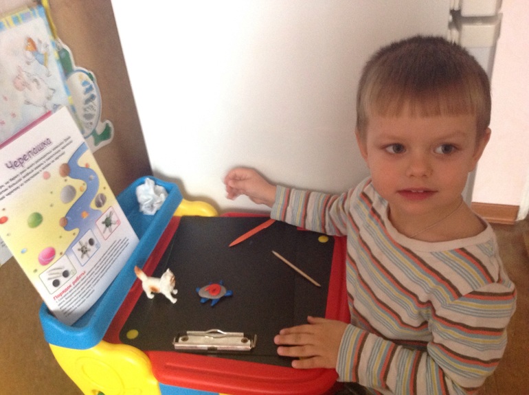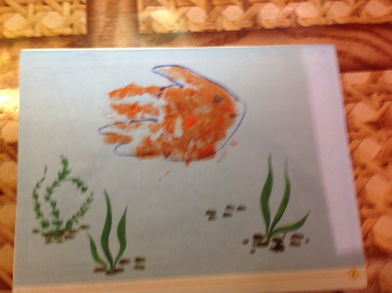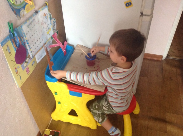 Раскрашиваем осьминога ( фиолетовую краску сами мешали из красной и синей)