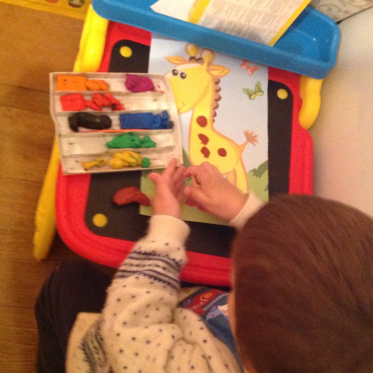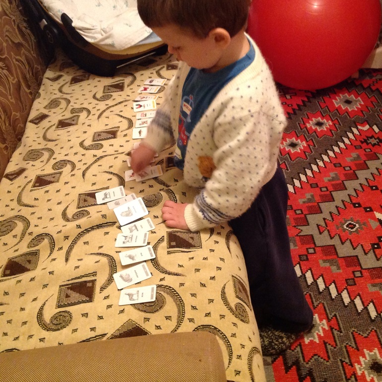 Потом Леша выпросил карточки с животными, мы их повторили и я дала с ними поиграться