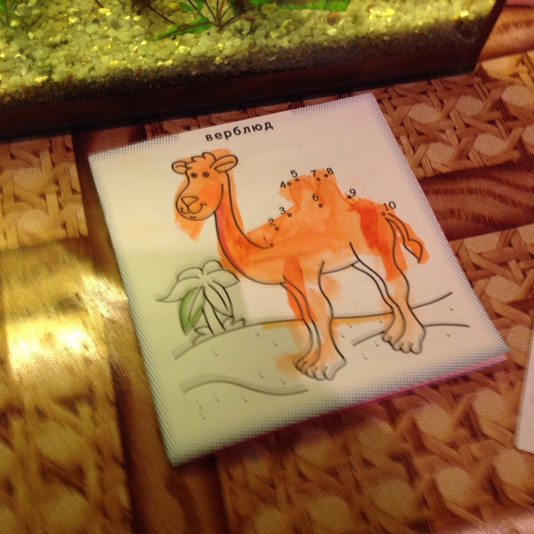 Рисовали по цифрам верблюда и жирафа. И раскрашивали