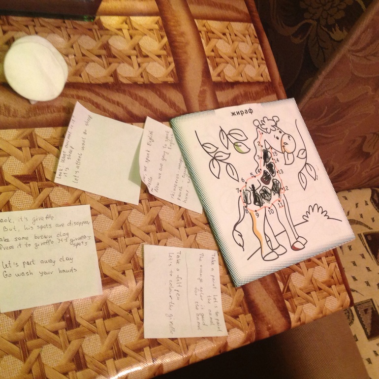 В конце занятия пошли папе показывать работы и озвучивать на английском что там