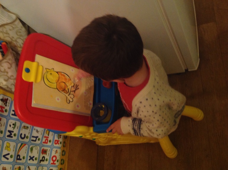 В течении занятия заявлял "не говори на английском, говори понятно". Зато когда я сказала что тогда занятие закончилось, просил еще, и даже сам начал "это пиг," "это дак"