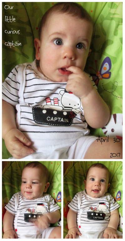 или напишу пост сейчас, или уже вообще не соберусь, суета отвлекает)) Мама уехала, свекровь приехала, у нас дом вверх дном))) Матюшке через 9 дней будет уже 7 мес.! Вот так вырастет, а я уже не помню, какой он масюнька был после родов, только по фото...(( Вес-рост пока не знаем, чувствую, что под 9 кг (голова 43,5, грудь 44), в конце месяца будем делать 2 Пентаксим. Ходим на массаж в поликлинику, потом еще физио будет из-за поставленного нам рахита. Дачи в этом году нет, да и солнца тоже... Повторяет ручкой то, что мы показываем, лепетал де-да-дя. Едим вовсю прикорм, примерно режим такой: в 6 утра грудь, около 10 каша+грудь, около 14 овощи+грудь, около 18 фрукты с творогом+грудь, на ночь около 22 грудь. Спит ночью с 22 до 6 утра примерно, не просыпается и не кормлю. Днем спит пару раз хорошо и еще вечерком минут 40. В целом спокойный и уравновешенный малыш, с озорной дочкой было тяжелее, а с этим даже дно кроватки еще не опустили, с Евой в 6 мес. пришлось из-за ее вертлявости. Видно, скоро верхние зубы полезут, стал беспокойный недавно, грызет все подряд) С рождением братика Ева резко полюбила своих пупсов)))