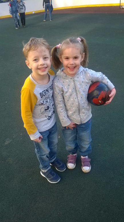 Ева после сада встретила на площадке своего одногруппника) Обоюдной радости не было конца))))