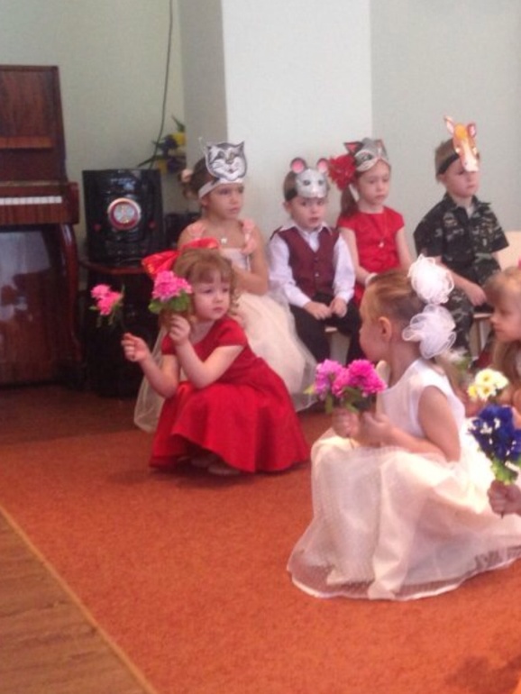 Зато Ярославе после состязания на конях палках первой ( из четырех) мальчик подарил платочек... ( это после истерии).. Потом была песня неваляшка ( рекомендую к прослушиванию: спит в кровати кукла Катя, оловянный спит солдатик....), к ней побежали два мальчика на танец, она выбрала первого, папа которого подарил шарик, а не второго, который платочек подарил... Уф... Мурашки бегут , что ждет ....