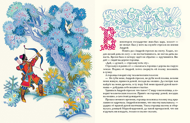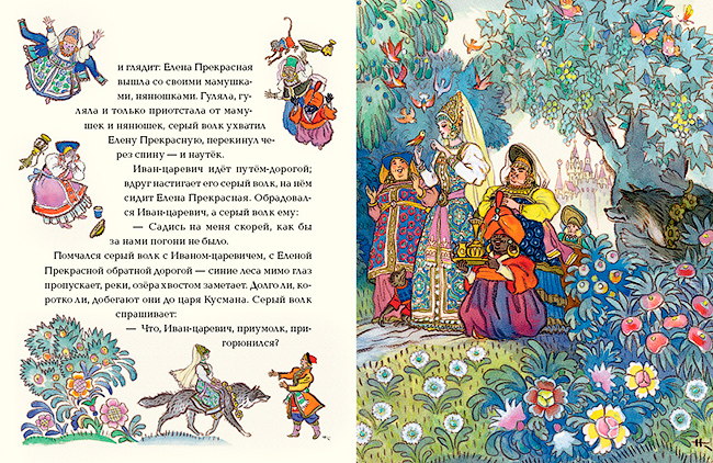 Книга, между тем, прекрасная! Наполненная добрыми молодцами, прекрасными девицами, доблестными конями, помощниками-волками, волшебными жар-птицами, живой водой, молодильными яблочками, камнем на распутье и прочими составляющими настоящей волшебной сказки!