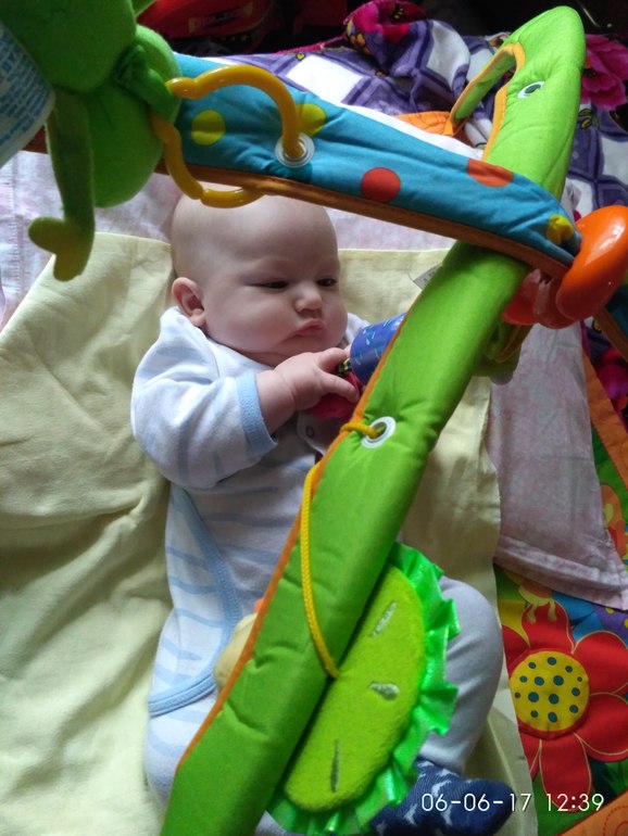 А вообще славочка очень улыбчивый, благодарный вниманию, быстро откликается на разговор, да и сам часто его инициирует.. пытается сесть, а лучше походить... Ну и конечно же красавчик с огромными глазами. Очень похож на маленькую Ярославочку ... А по размерам так Ярослава была такая в 9 месяцев... И уже ходила))). Но конечно ему то не время ещё.