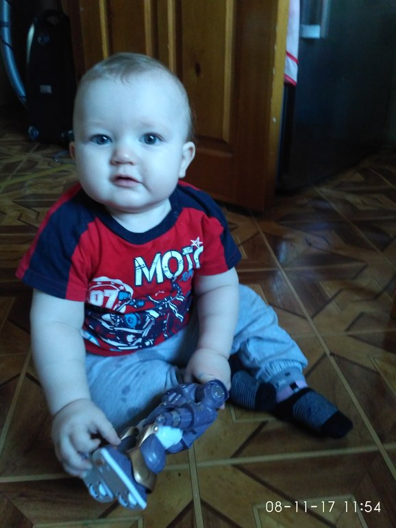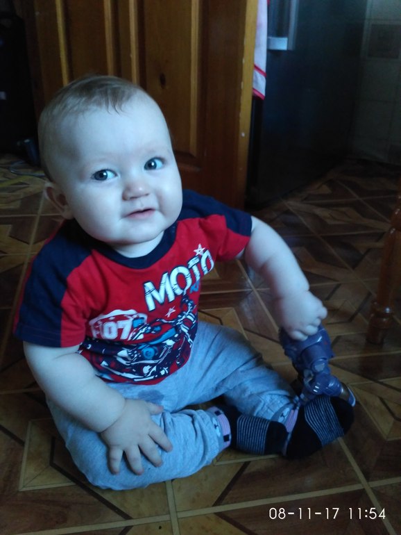 А вообще хочет ходить. Подползает , берет за ручки и ходим, потом ползем...