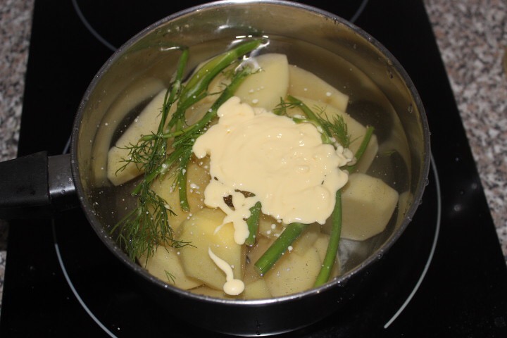 При варке картофеля добавляю стебли укропа (для аромата) и немного масла или маргарина, так она лучше разваривается и соль только при полуготовности картофеля