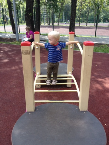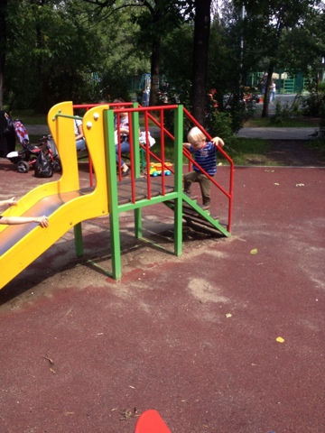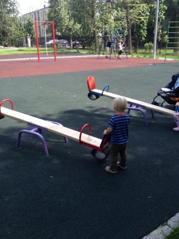 Качалки (или как эти штуки называются?) тоже не вызвали ажиотажа. Полез на них тогда, когда увидел, как там взрослый мальчик качается)