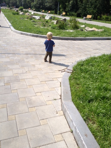 Погуляли мы классно. Андрейка наползался-набегался, а мы с мужем сначала вместе посидели на лавочке, а потом по очереди. Ибо Андрейка ничего не боится и лезеть хоть куда)))