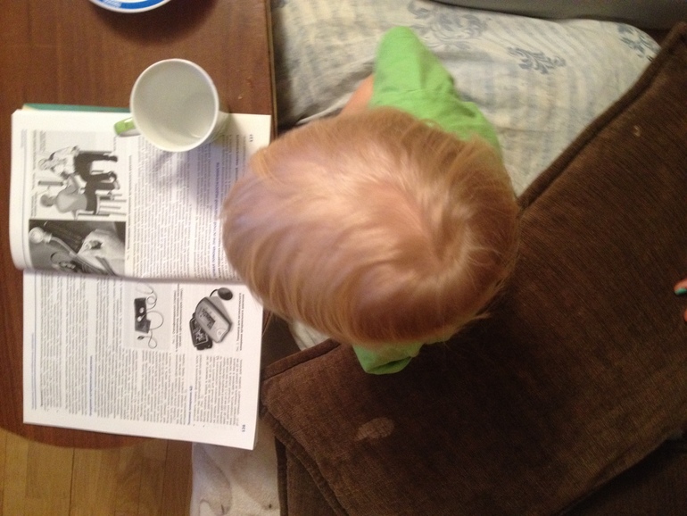 ПовседневноеСела я про сердечную недостаточность почитать, пока Андрей рисует. Ага, как бы ни так... Сын тут как тут- отобрал журнал и уселся изучать технику измерения давления.