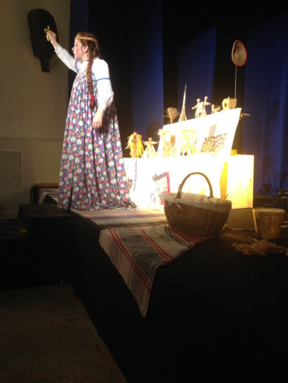 Спектакль очень понравился - динамично, интересно, музыкально. А после спектакля делали куколок из соломы. я сделала куклу, а Андрей сделал двух приведений. Мальчишки такие мальчишки...