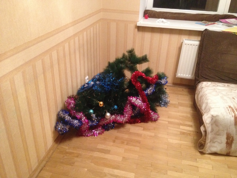 Нарядили елку. Затем Андрей ее разрядил. Снова нарядили. Опять разрядил. И так 6 раз только за первый вечер...