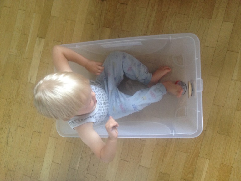 Думаете, это ребёнок сидит в коробке? А вот и не угадали! Это ребёнок едет в магазин на машине. Под ногой педаль, на передней панели руль - все по взрослому!