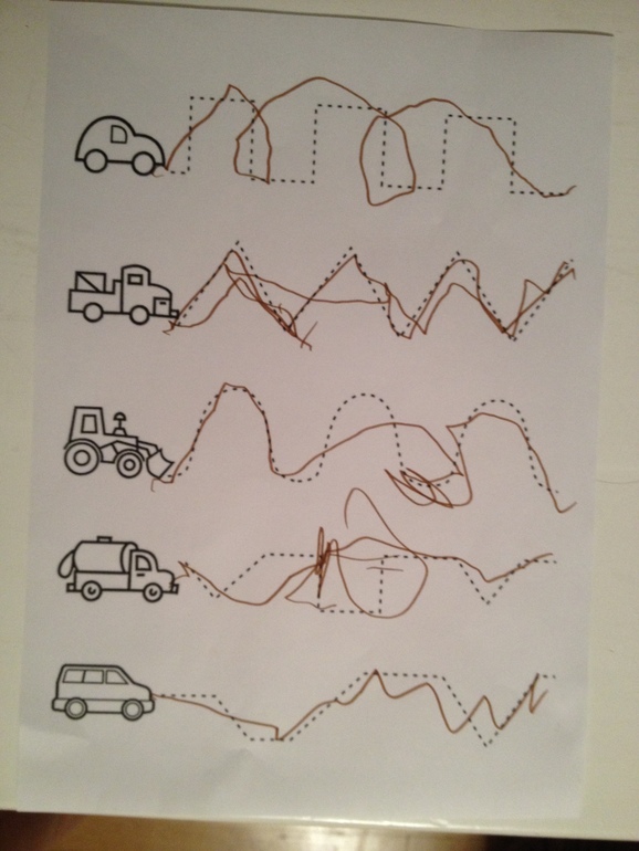 рисовали "соединялки". Первый опыт. Андрей не впечатлился. Сохраню фото на память)))