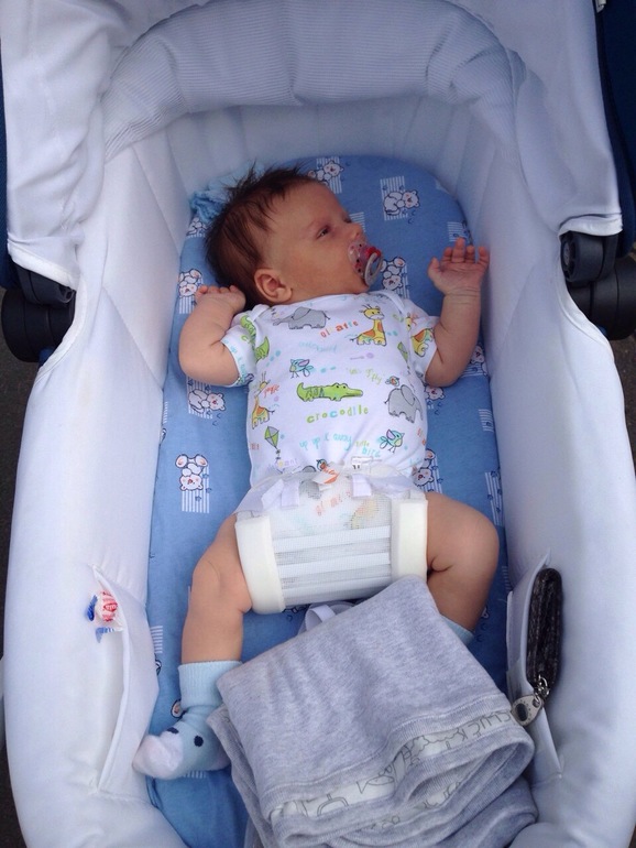 Сказать, что я была напугана, - это ничего не сказать! Сразу полезла в интернет, начиталась ужасов и решила для себя больше никогда не открывать интернет в поисков ответов на вопросы) К счастью, врач объяснил, что дисплазия лечится и никак не отражается на развитии ребёнка! Но одно то, что мой малыш должен носить ортез 24 часа в сутки, очень расстраивало меня! Но, к счастью, меня он смущал гораздо больше, чем Лео! Малыш в месяц спокойно принял новое положение ножек, в разведенном состоянии! Единственное неудобство - это процесс переодевания и укачивания на руках. Спал Лео только на спине. Но мы привыкли!