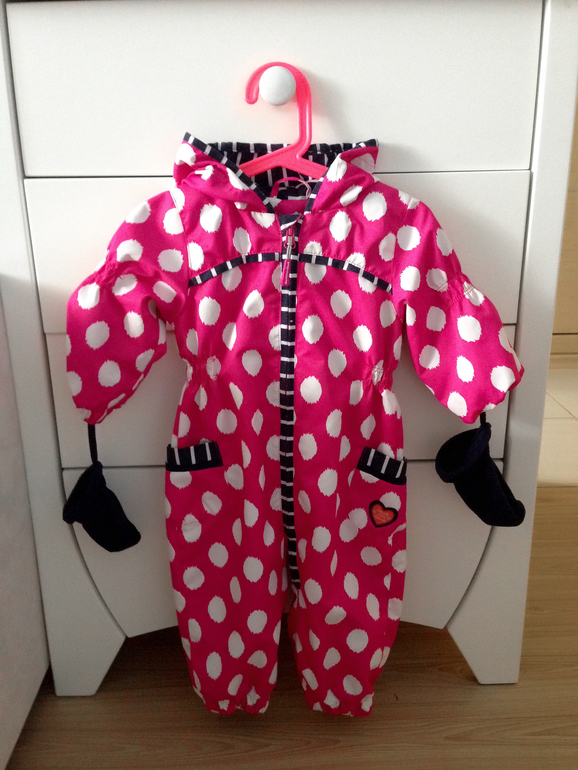Комбинезон Deux par deux (в белый горох), размер 12М - маломерит, реально на 9М, на тонкой х/б подкладке, в комплекте флисовые рукавички. Стоимость 1000р.