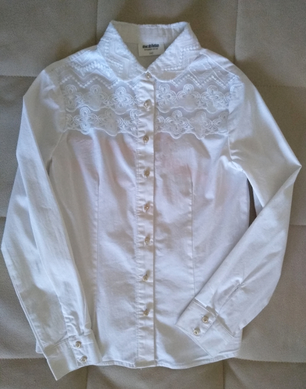 4. Блузка белая, Акула, р. 140, б/у, маломерит, лучше на 134 см, цвет белый. Носили мало.