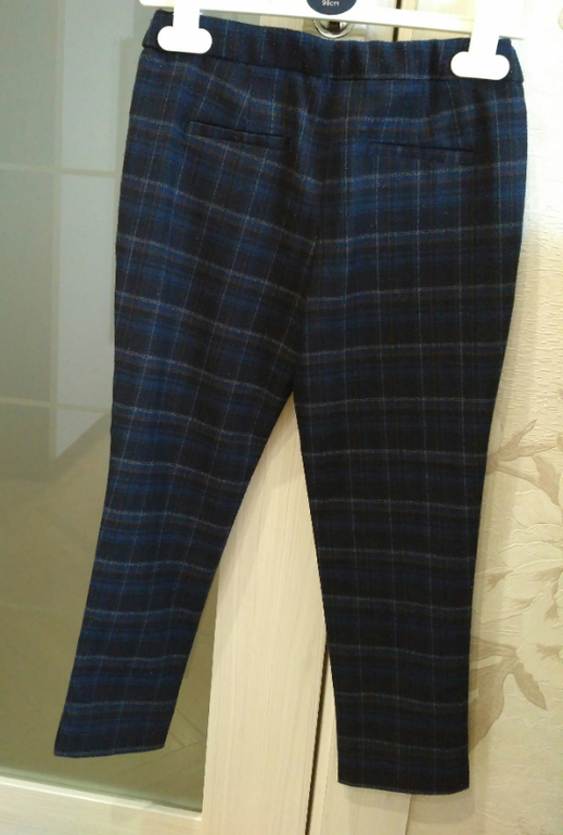 8. Брючки Sela, р. 8, синие в клеточку, есть утяжки. Надевали пару раз, укороченная модель под сапожки. Цена 1000 р.