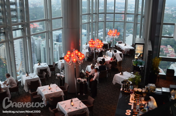Всем, кто дочитал, картинка ресторана, который прям под баром. И из окна кусочек Сингапура с высоты птичьего полета