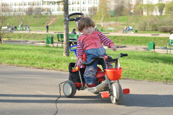 Всю зиму почти дома просидели, ребенок ни в какую в коляске не сидел - 15 минут было максимум. И как только сошел первый снег мы выкатились на велике и...чудо!!.. я с непривычки заворачивала домой через полчаса, час... а она и 2 часа теперь гулять может!) Ура! Но вообще теперь Олюха ходить научилась и велик ее меньше интересует чем горки и песочница)