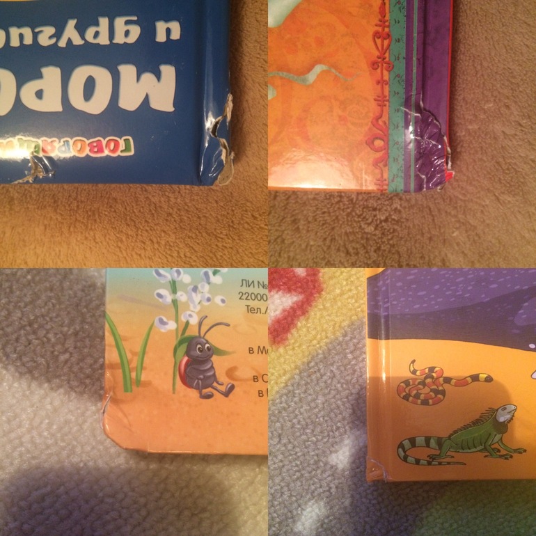Заказывала 2-а раза оба раза книги с повреждениями на обложке (( причем они запакованы в пупырчатые пакеты, и я, когда принимала в первый раз даже подумать не могла, что они могут быть повреждены. В первый раз сверила наличие и отпустила курьера, а там... ну дети не заметили и ладно. Второй раз был вчера, курьер задержался и приехал, когда мы купали детей, уже было не до проверки изъянов, да и честно говоря я не думала, что такое может повториться. Уложили детей, развернула книги: