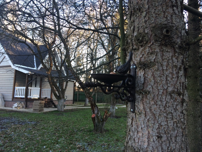 Вот вид с другой стороны, это наша кормушка, которую мы хотели повесить в тауне, но таун этот... когда еще будет... повесили здесь и кормим птичек )