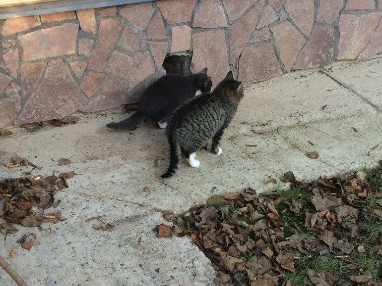 А вот местные котики - прибились к нам, подкармливаем, а они стали жить у нас под домом, перепугали или переловили всех мышей.