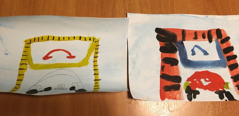 А еще он там ходит время от времени на кружок по рисованию На кружке он научился делать фон и еще научился рисовать машину в гараже 😁 Решил провести мне мастер-класс: