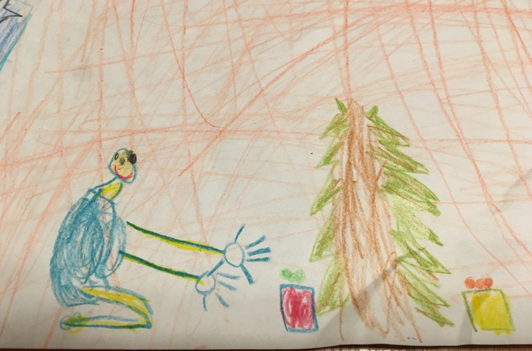 Посмотрите какого он радостного себя нарисовал под елочкой, ну прелесть же!