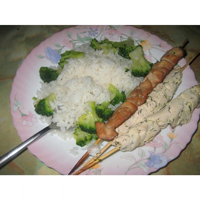 Вот наши шашлычки по рецепту @evgeniyaperceva. Машка на них накинулась как голодный тигр. Было забавно))) Все очень вкусно и просто. Тёмная курочка вымачивалась в соевом соусе и мёде, светлая в сметане, чесноке, укропе, соли. #курочка #вкуснятина #шашлычкидома