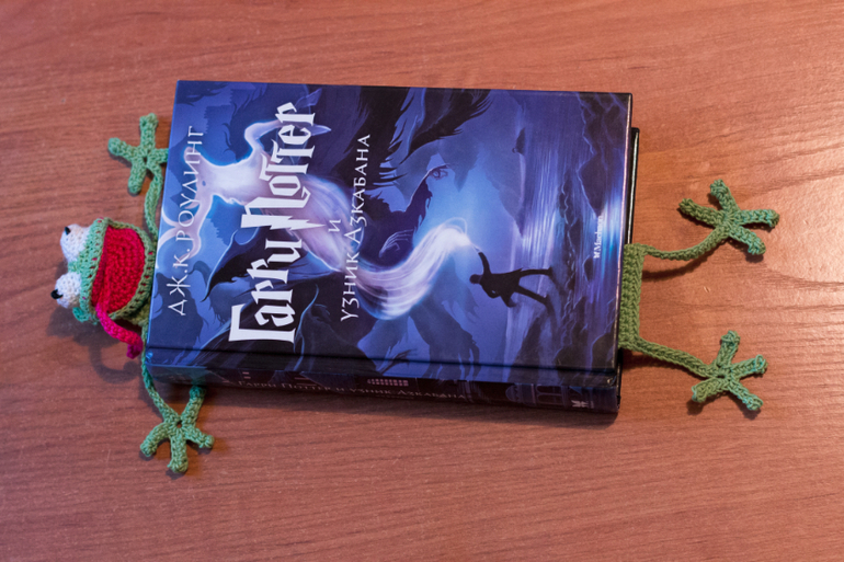 Вчера в книжном сообществе увидела фото с такой закладкой. Руки зачесались сразу же, порылась в нитках и сегодня Квак уже радует Лерку. )))