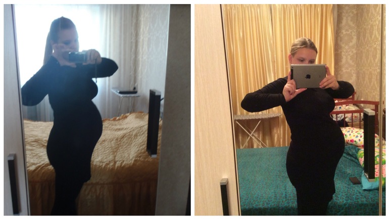 Ну и фото в динамике. Если приглядеться, то животик вырос вверх немного, стал еще круглее, а вперед пока мало вырос.