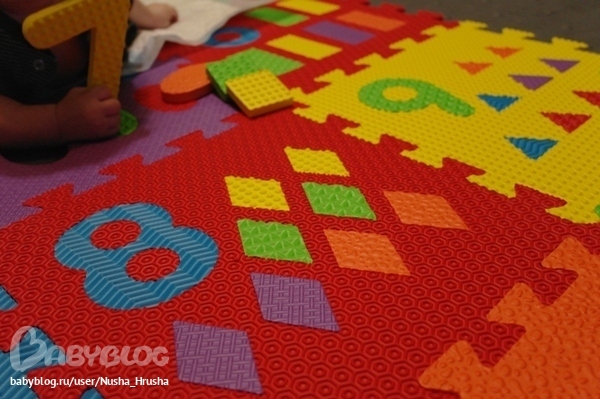 Купила коврик-пазл, такой он классный, каждый пазл с разной поверхностью, ребенок сразу опробовал.