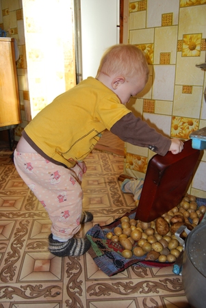 ООчеень любит помогать на кухне.. везде таскает за собой стул и как только кто то идёт на кухню летит на всех порах. По вечерам делает деду массаж