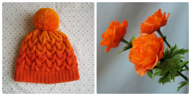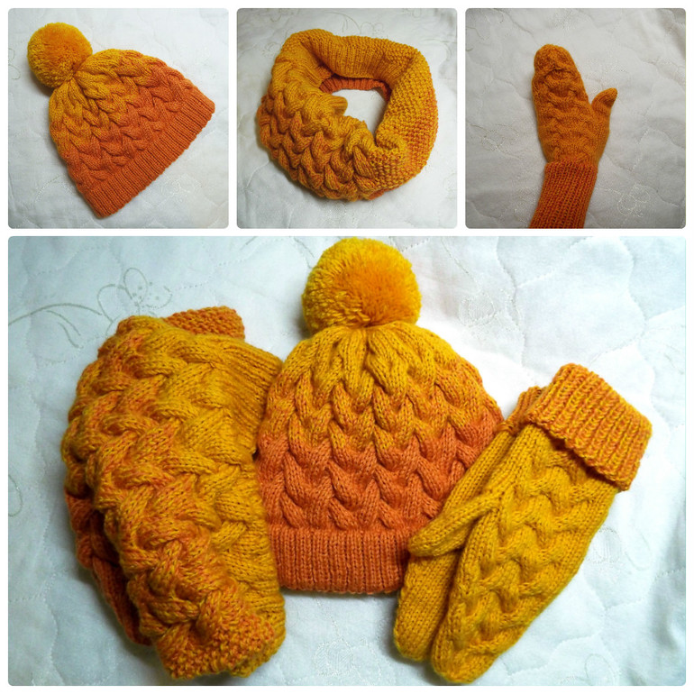 А вот как выглядит на самом деле мой зимний комплектик. Т.к. фотограф из меня совсем не очень, то передать цвет было очень сложно. На самом деле это коралловый и огненно-оранжевый цвета. Как у цветочка огонёк, моего любимого цветочка)