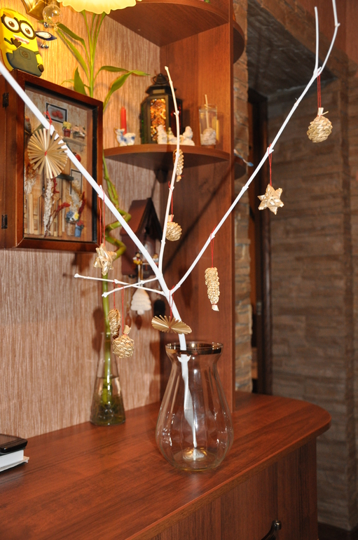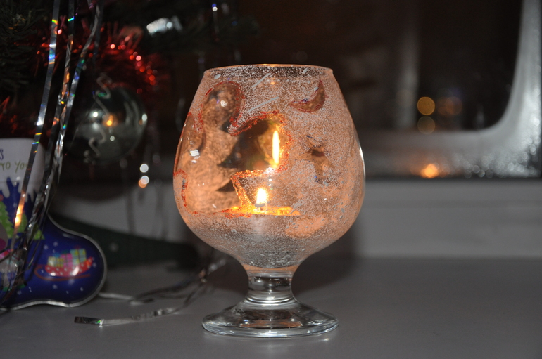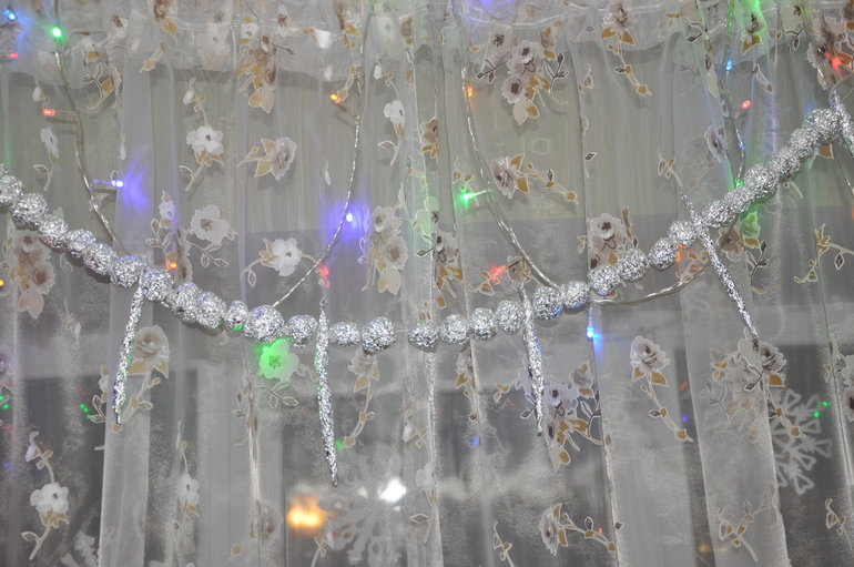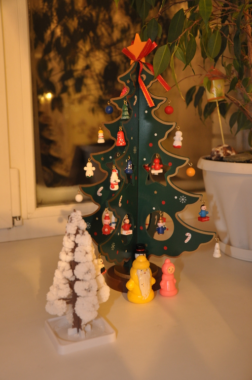 Мы наряжали ёлочку из дерева, делали ледяные украшения для ёлки во дворе дома, смастерили новогоднюю гирлянду из фольги, домик для свечи, вырастили ёлочку из кристаллов, раскрасили ветку дерева и нарядили игрушками, сделали шар из ниток, посадили овёс и "отрастили волосы" обезьянке, сварили мыло и завтра, в последний день, запустим небесный фонарик, который улетит к Деду Морозу.