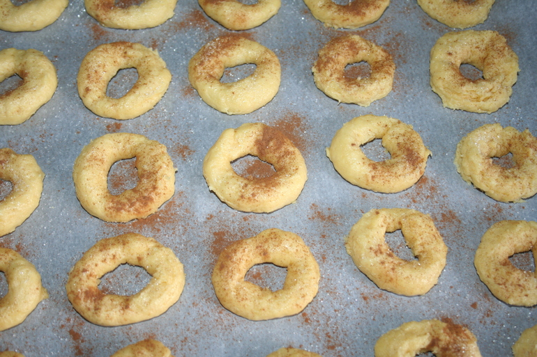 Мы готовили с дочкой, и ей этот способ понравился больше всего :-) Посыпать круглики можно тем, чем захочется, мне нравится сахар и корица.