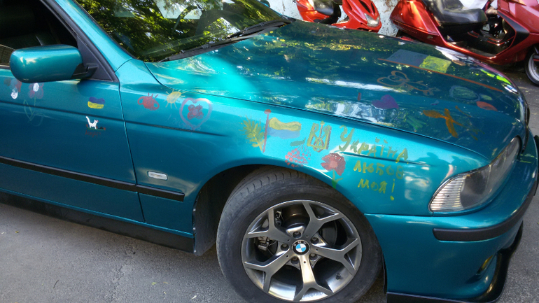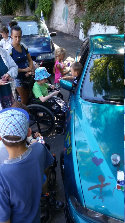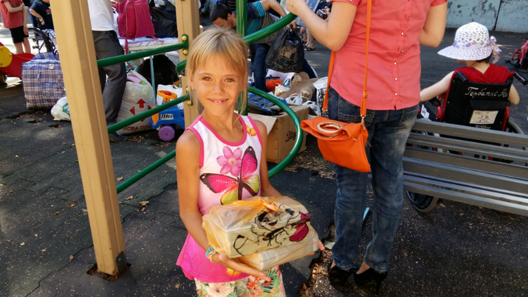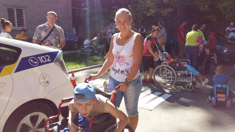 Сначала, наверное, опишу впечатления. Дети все позитивчики. Я периодически отходила в сторону чтоб не зареветь ибо их выдержке и упорству можно только позавидовать. Анюта прониклась, подарила сплетенные браслетики девочкам, пообщалась с теми, у кого речь разборчива. Я взяла одного парня и везде его катала. Была полиция, которая рассказала им о правилах дорожного движения и разрешила деребанить свою машину - все кто мог сам сесть садились и кричали в рацию, включали сирену. Кто не мог сам,того пересаживали и они были такие счастливые!!! Главное было не реветь когда они радовались. Потом один из участников дорожного движения разрешил детям еще и в огромном джипе посидеть. А те, кто приехал на мотоциклах - катали детей вокруг детского дома. Акция была посвящена сбору детей в школу, поэтому привезли в подарок канцтоваров. Ну а т.к. есть много лежачих деток, то и подгузники. Немного одежды, погремушки и толокар.